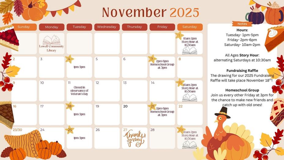 The library is funded by the Town of Lowell and offers an assortment of fiction and non-fiction in many different genres.